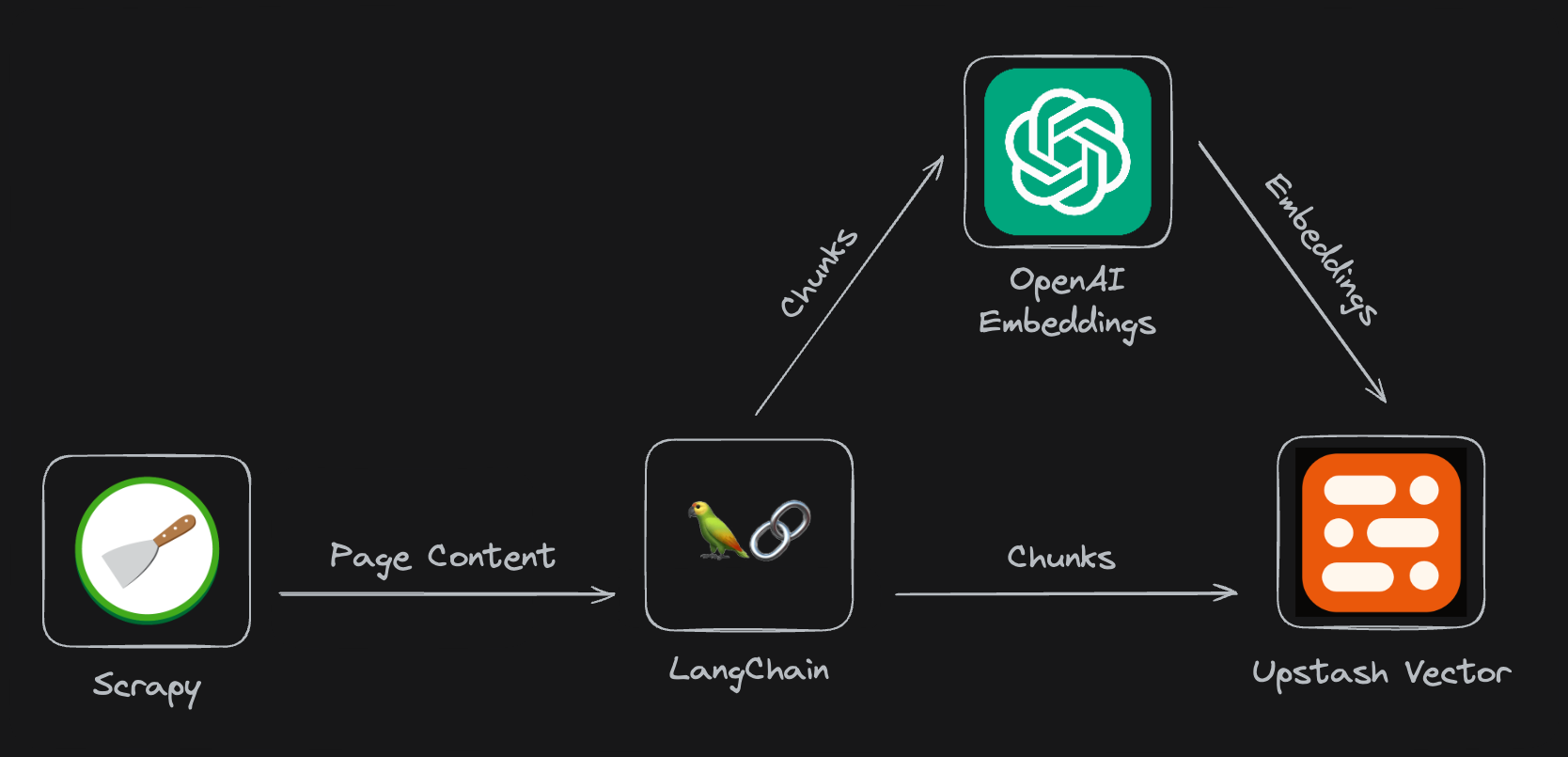 - Data Collection: To populate the Upstash Vector Store with relevant information, there should be an easy-to-configure scraper. The scraper should split the page contents into chunks and store them in the Upstash Vector Store after fetching their vector embeddings.