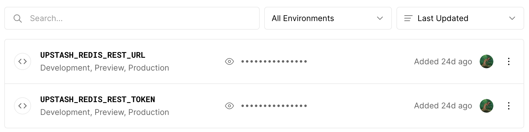 $ npx vercelMake sure to add the environment variables to Vercel either by copying them from the Upstash console or by using the Upstash integration.