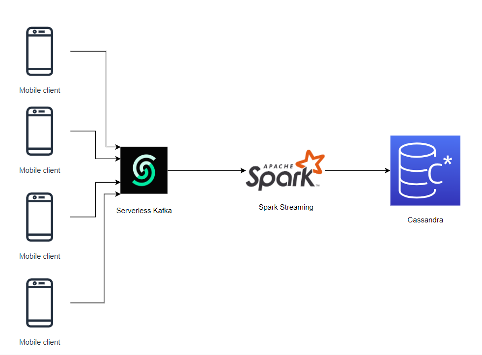 In this blog post, we have implemented a simple pipeline by using serverless Kafka from Upstash to collect the data from the mobile application, Apache Spark to stream the data from serverless Kafka to our Cassandra database. At the end, we have used Cassandra as our database.