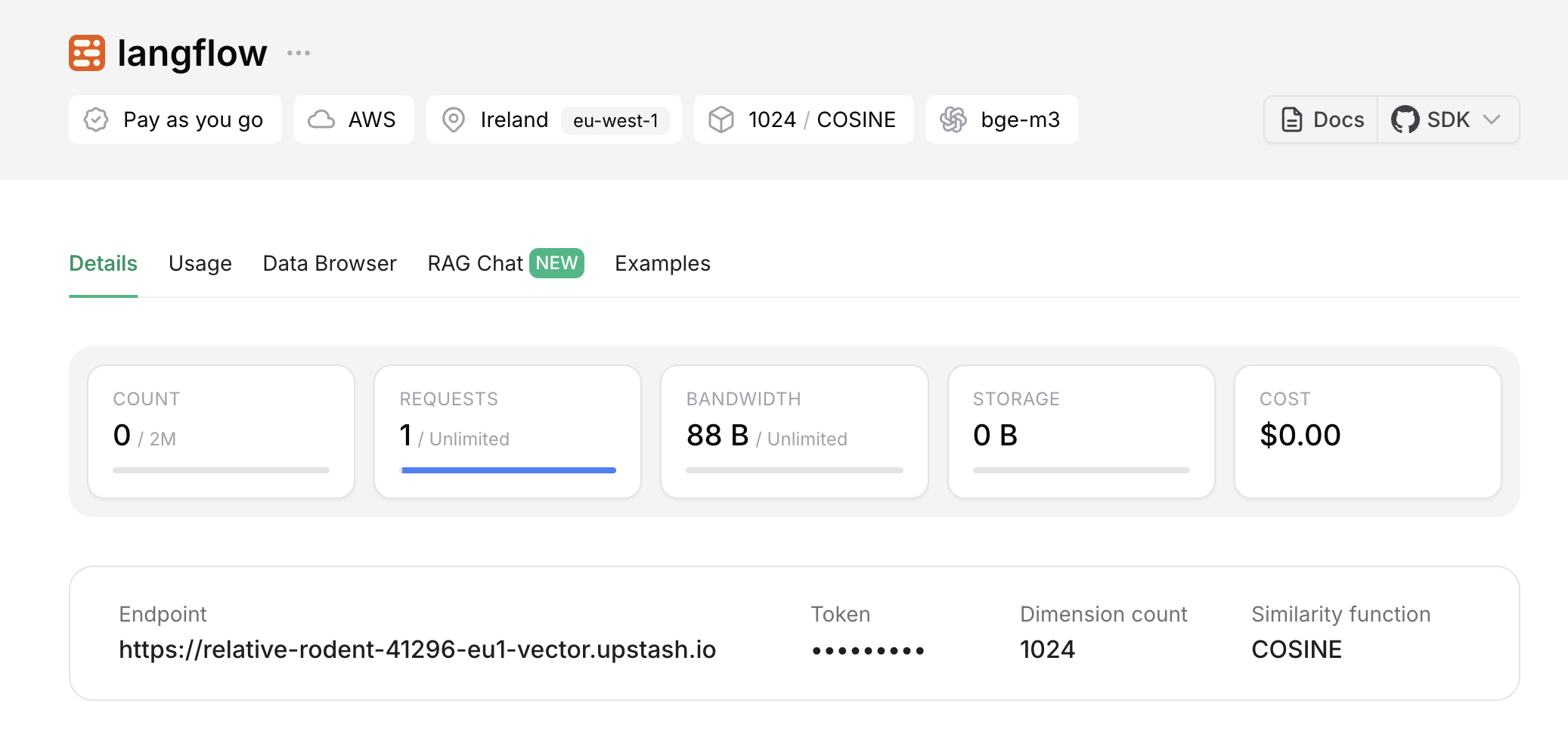 You can insert data into the index directly via the Upstash console’s "Data Browser" tab. However, in this example, we’ll use a Langflow workflow to insert data.