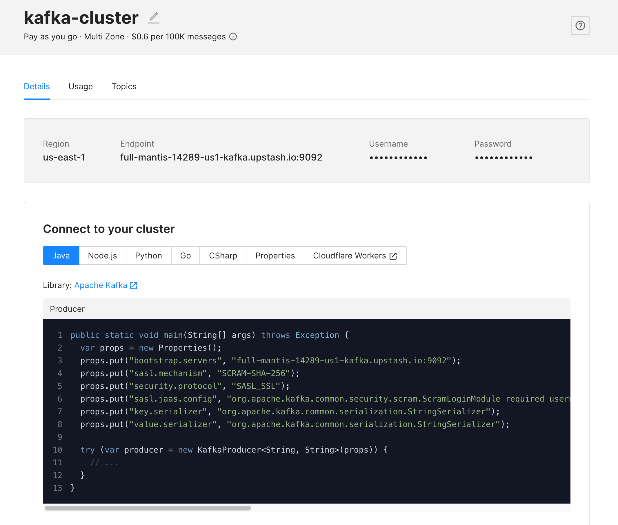 In this post, we will show how to push Stripe events to Apache Kafka using Upstash Webhook API. Once data is in Kafka there are many use cases how you can use it: