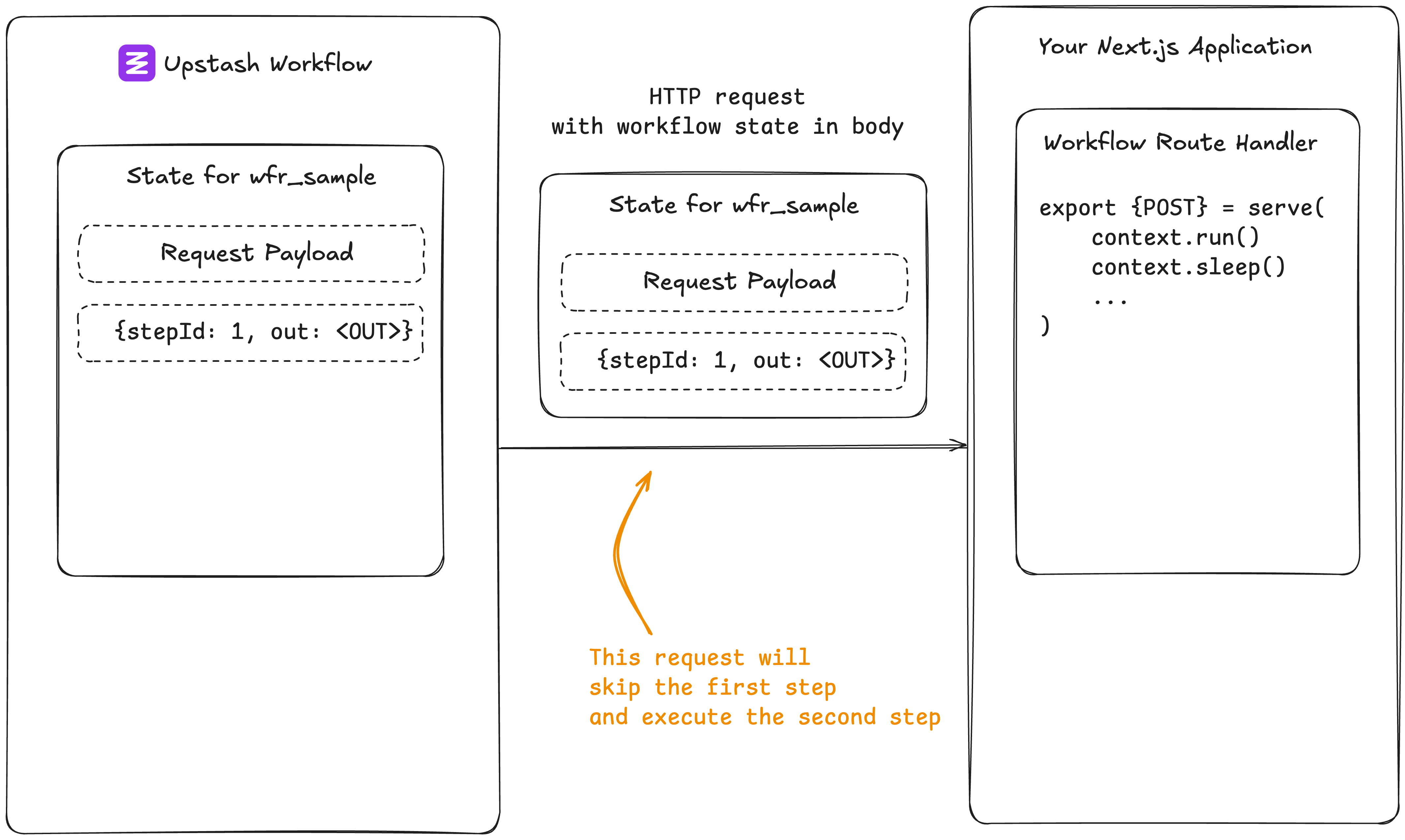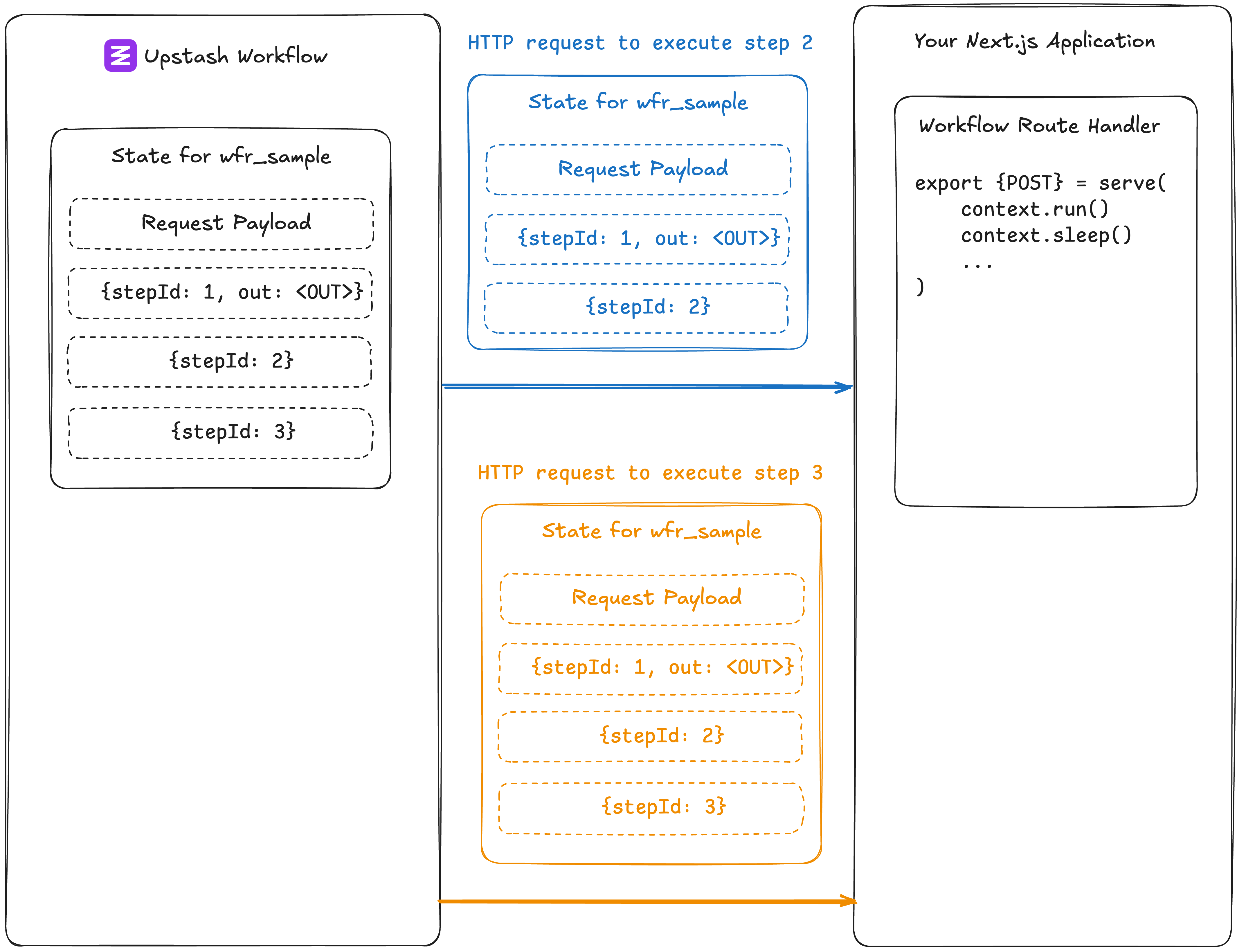 Upstash calls your API for each step, and your workflow logic starts executing from the top.