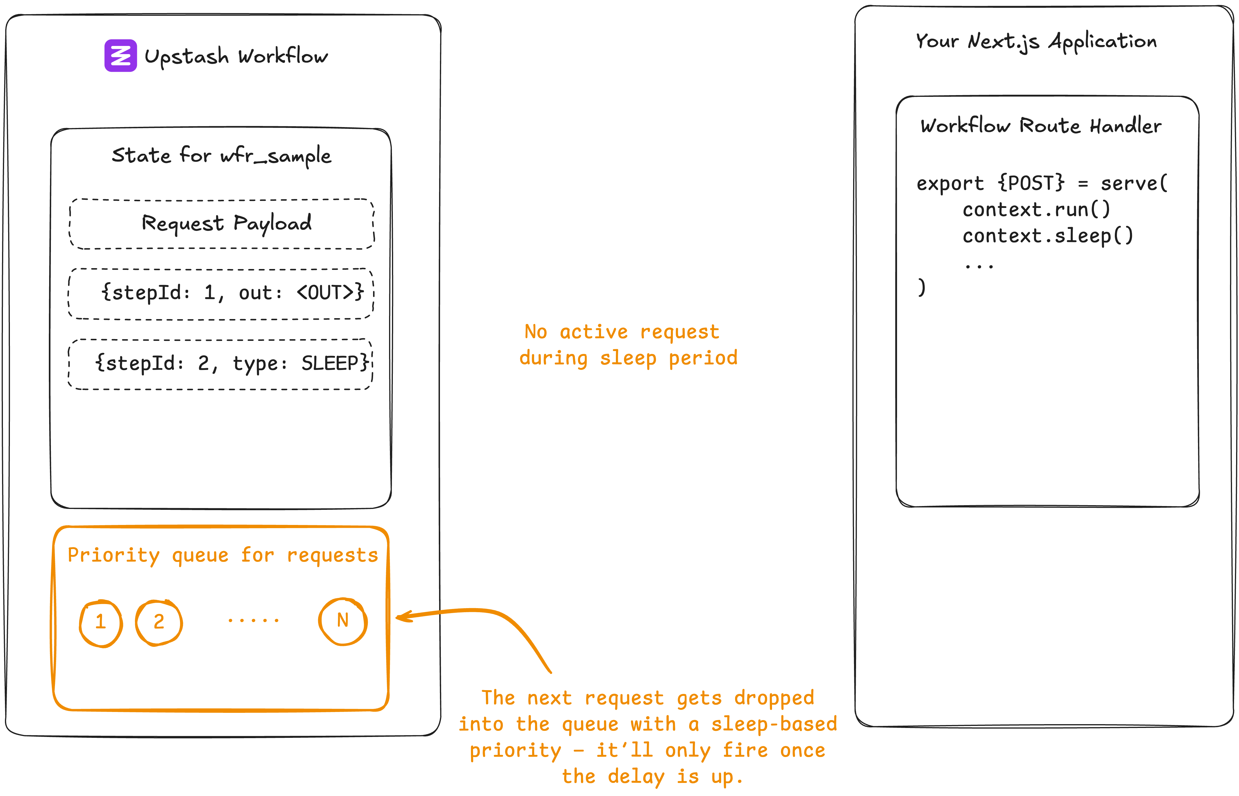 It's like outsourcing the waiting part. Your app just declares what to do, and Upstash handles the waiting and retrying.